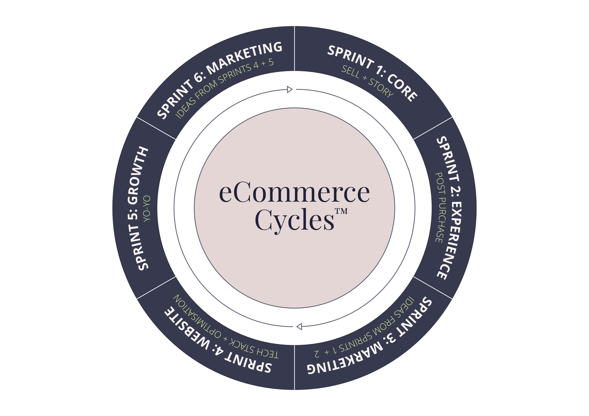 The Cohort guides you through the eCommerce Cycle™: 6x monthly sprints that focus on the key areas of eCommerce. Each month, there will be a mixture of guided coaching, lessons from an expert, and interaction with fellow eCommercers (what I call folks who work in the field of eCommerce). All of this is designed to help you know what to do, how to implement, and actually get stuff done that has a positive impact on your business.